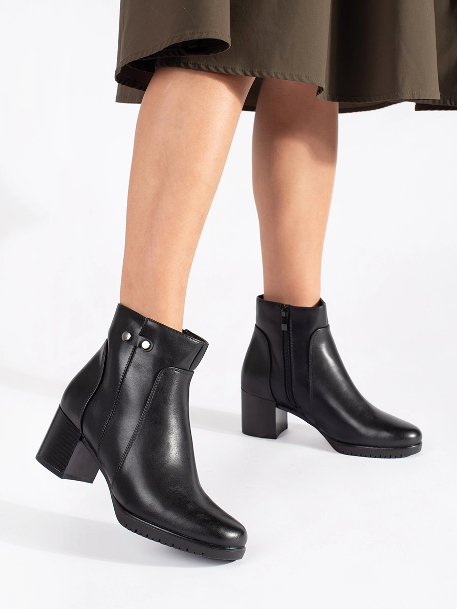 Dámske klasické členkové topánky čiernej farby na širokom podpätku