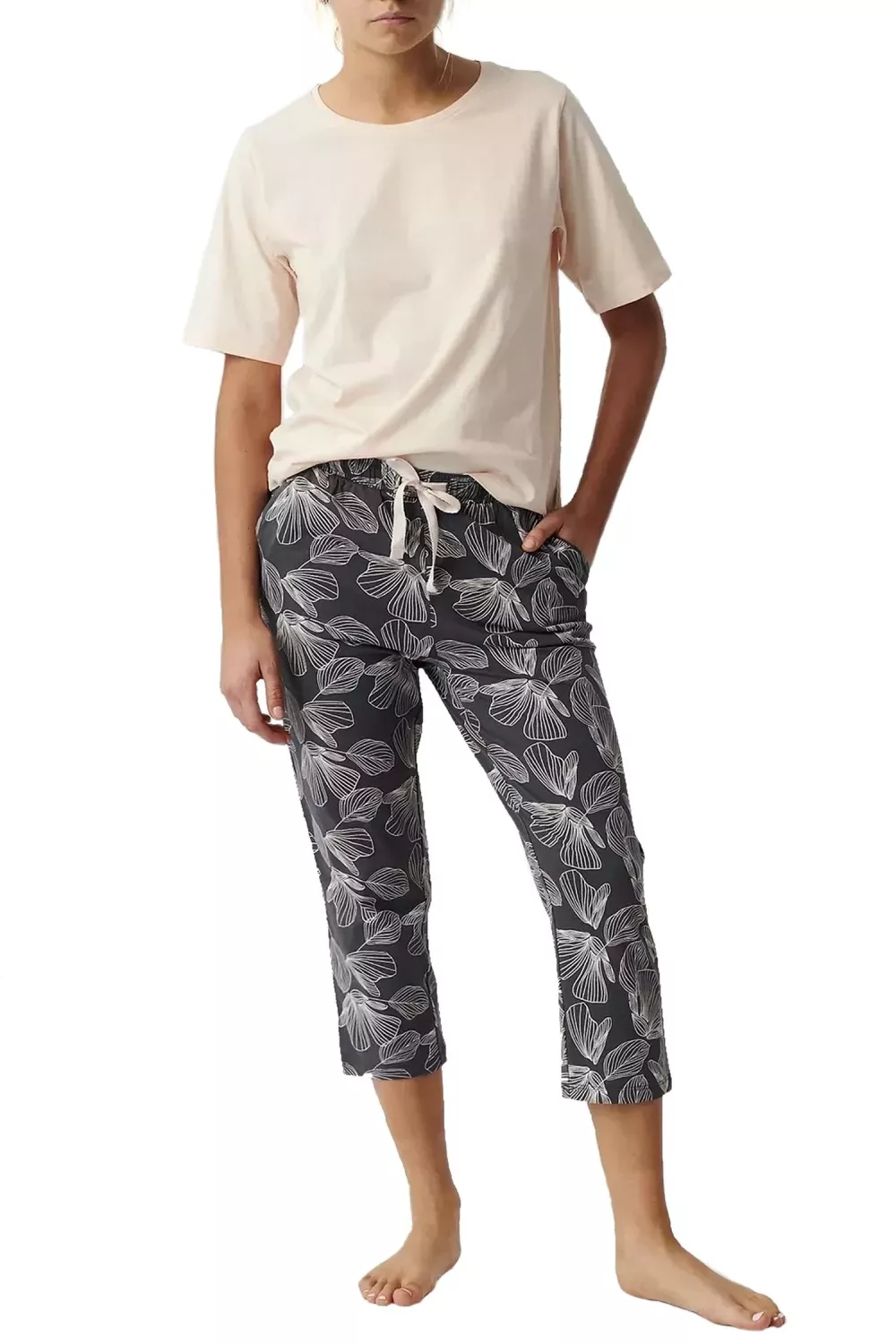- vzorované nohavice s bočnými vreckami a motýlikom v páse