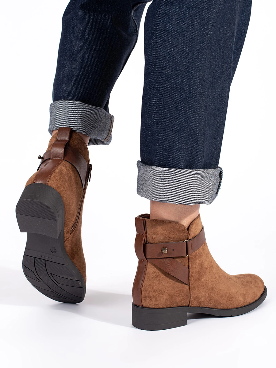 Exkluzívne dámske hnedé členkové topánky na širokom podpätku