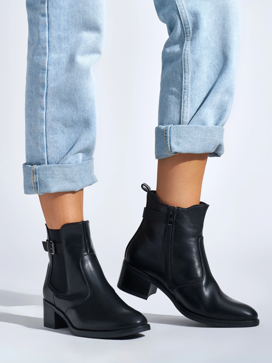 Luxusné dámske čierne členkové topánky na širokom podpätku