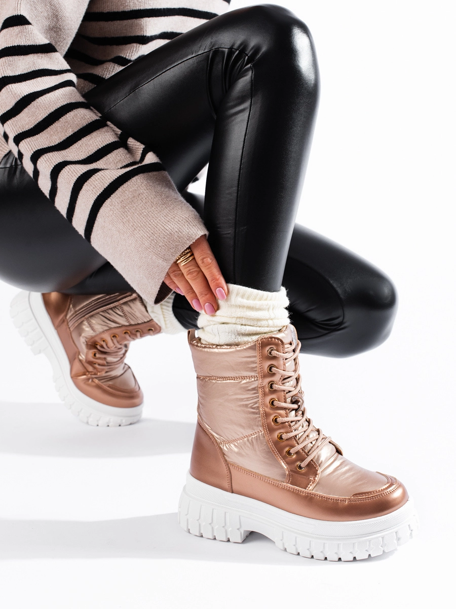 Luxusné dámske snežnice zlaté na plochom podpätku