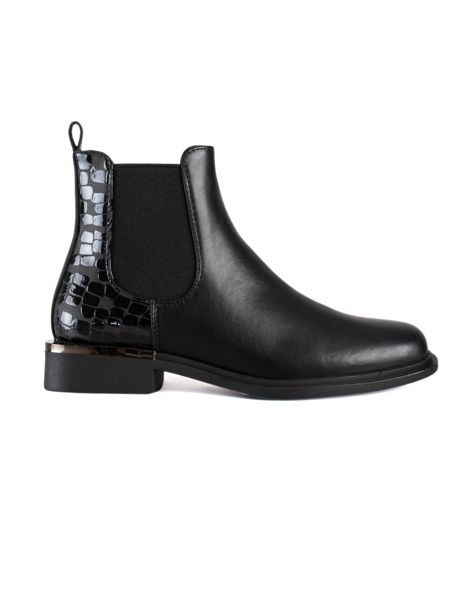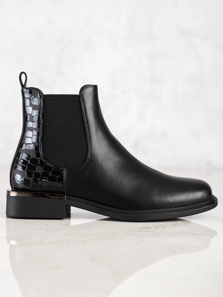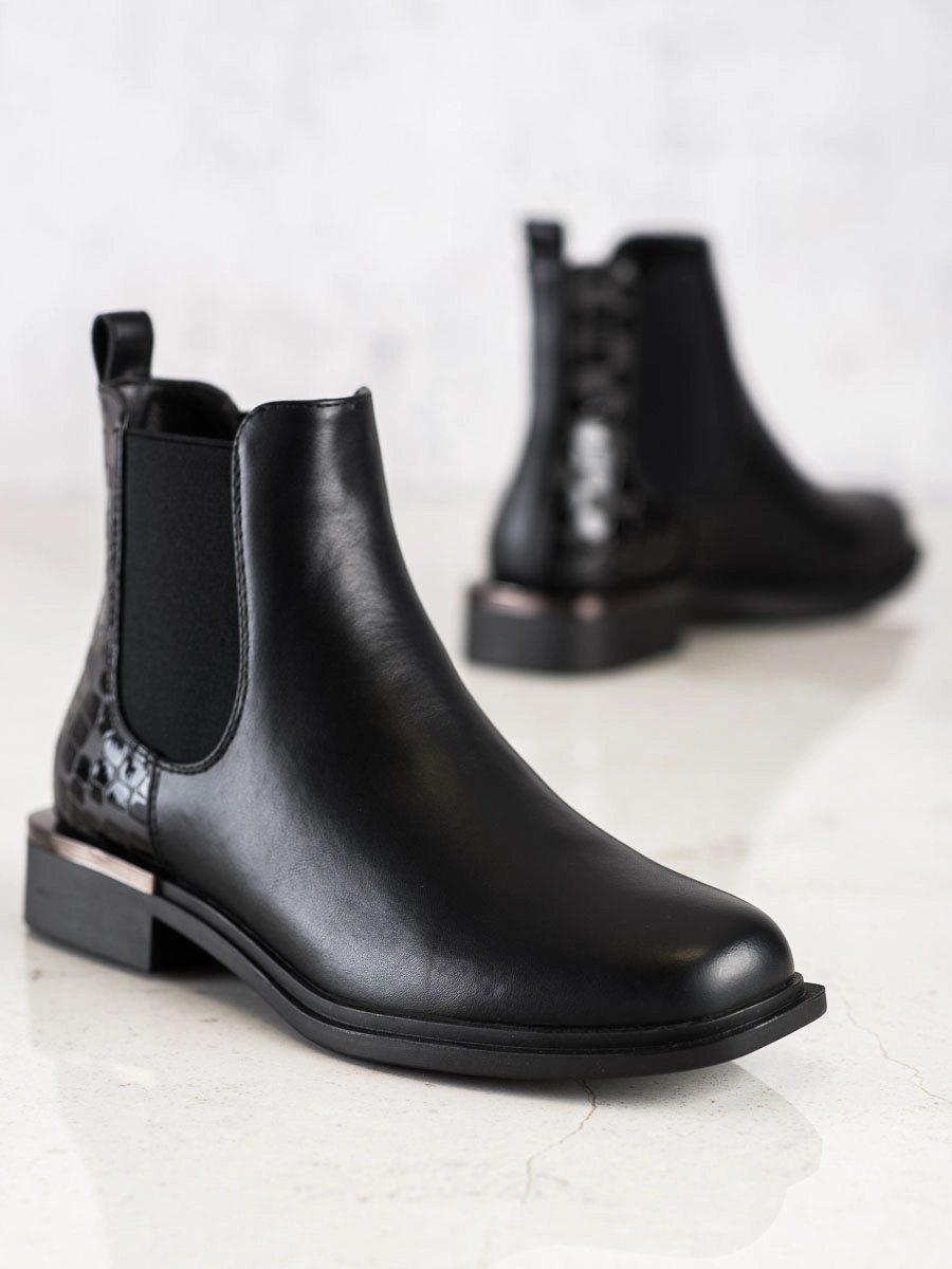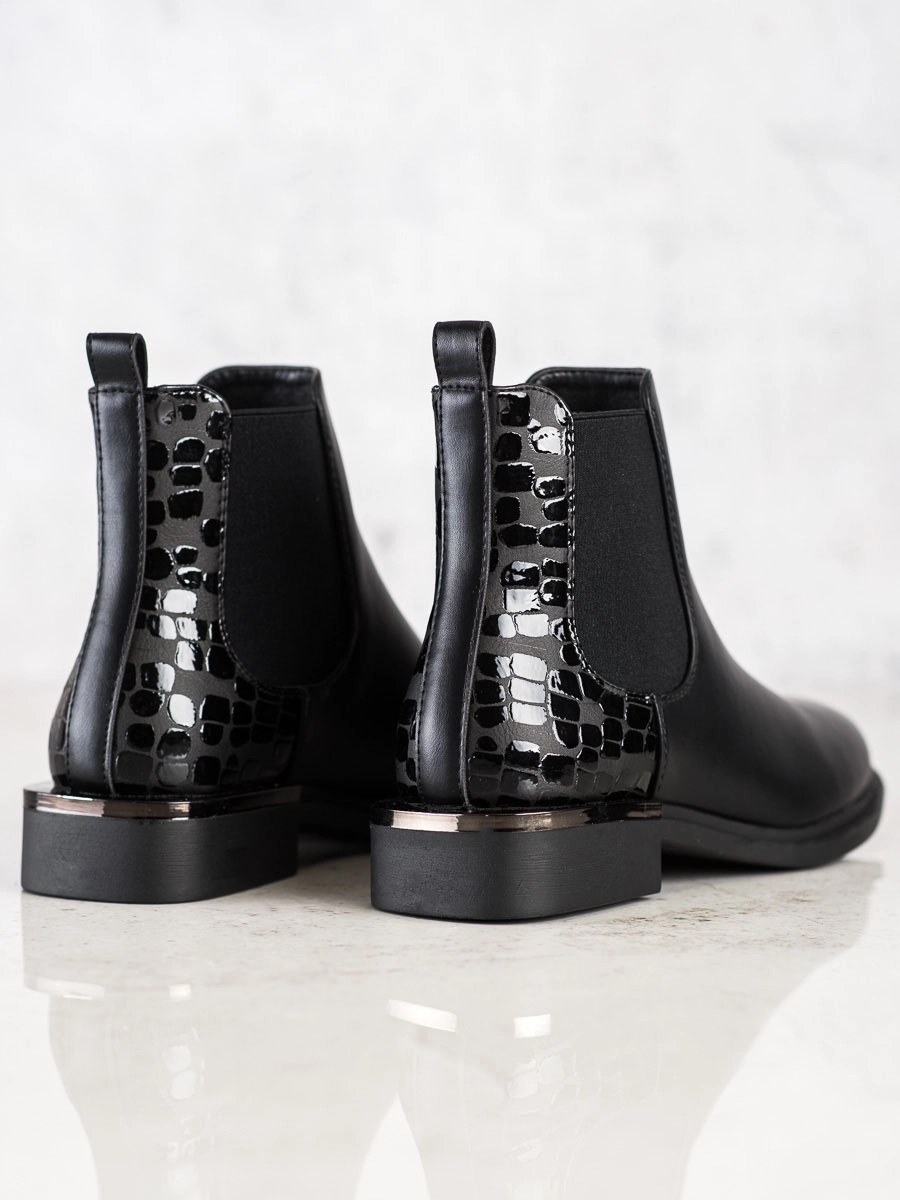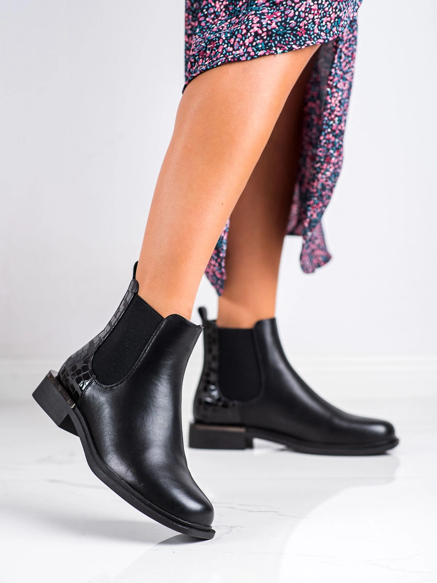 Moderné čierne členkové topánky na plochom podpätku pre ženy