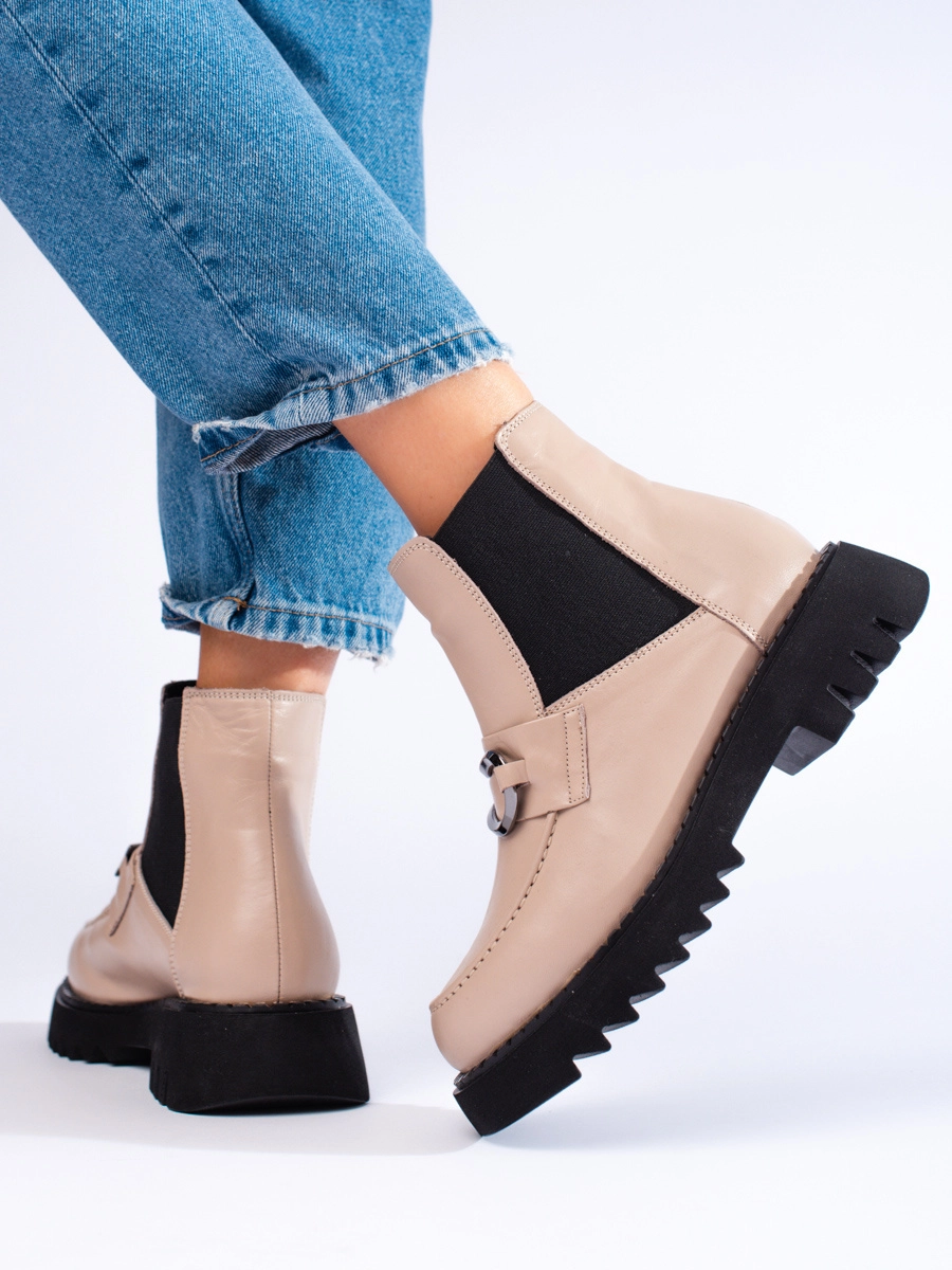 Módne béžové dámske členkové topánky s plochým podpätkom