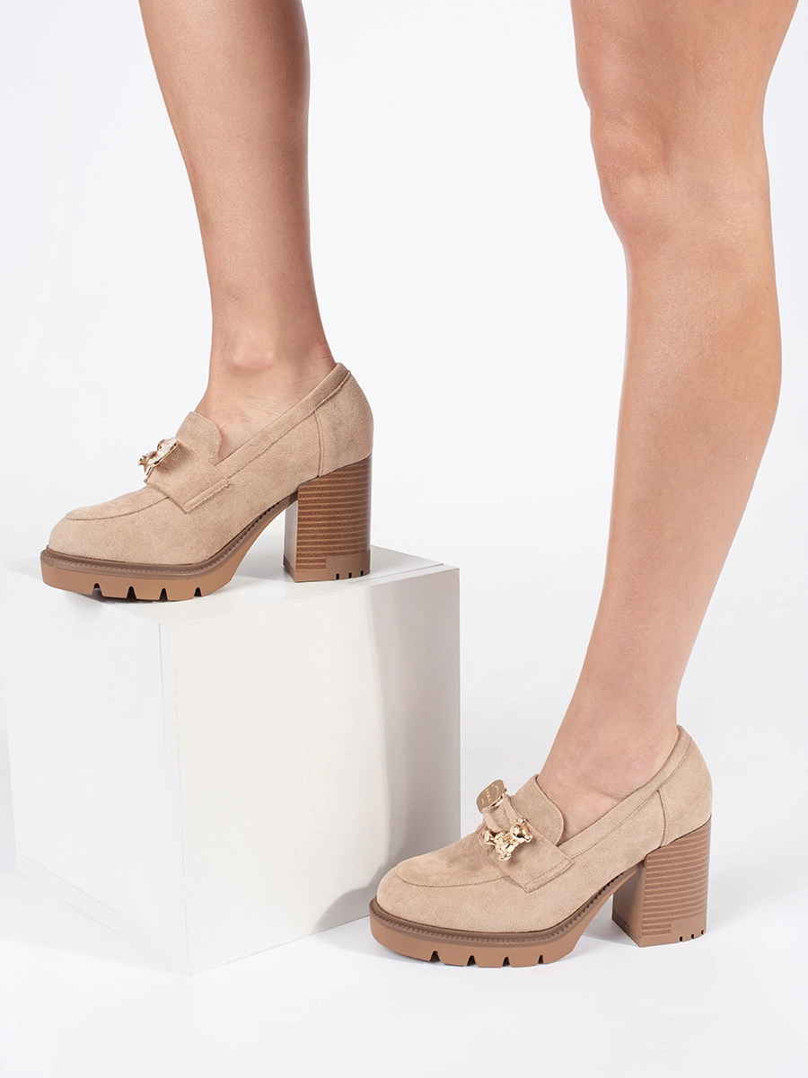 Módne béžové dámske topánky na širokom podpätku