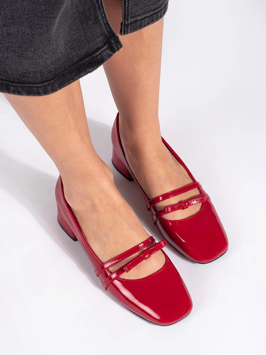 Originálne červené lodičky pre ženy na širokom podpätku