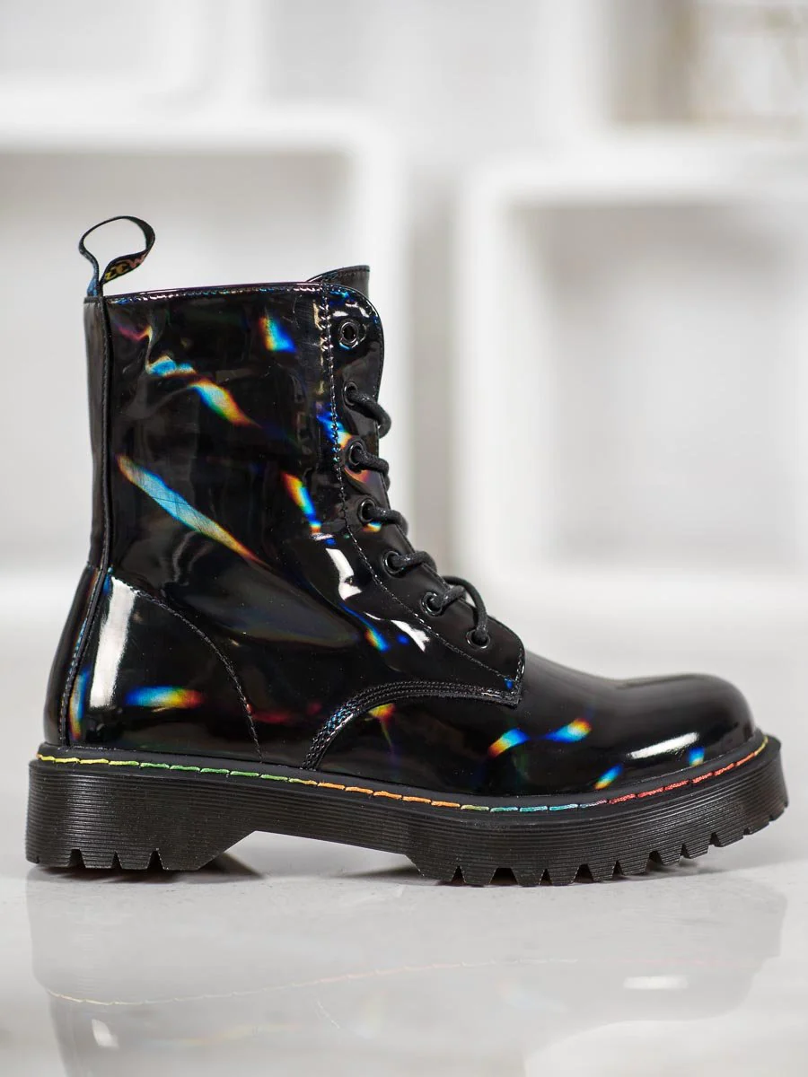 Pekná čierna dámska pracovná obuv s plochým podpätkom