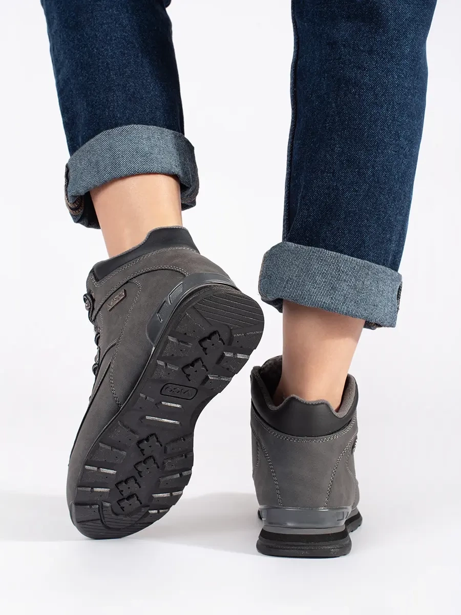 Pekné dámske trekingové topánky sivé na plochom podpätku