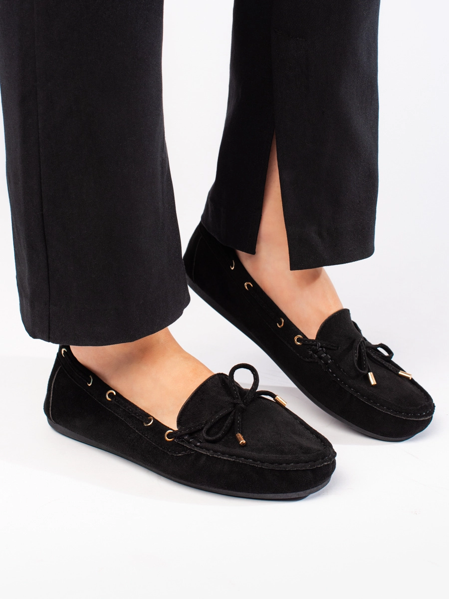 Pohodlné dámske čierne mokasíny bez podpätku