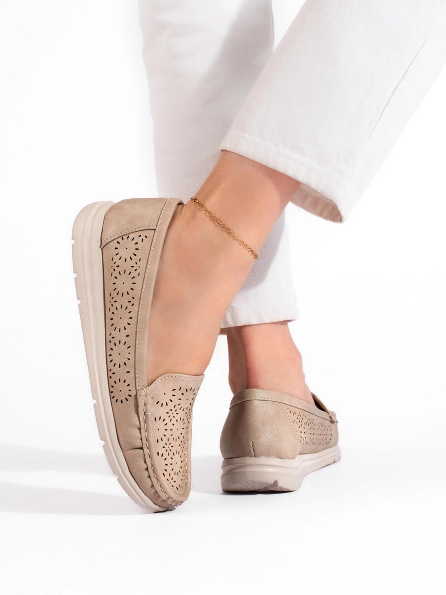 Pohodlné dámske mokasíny béžové bez podpätku