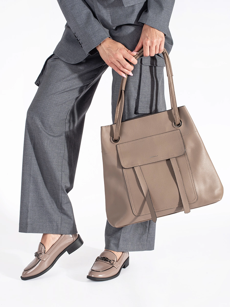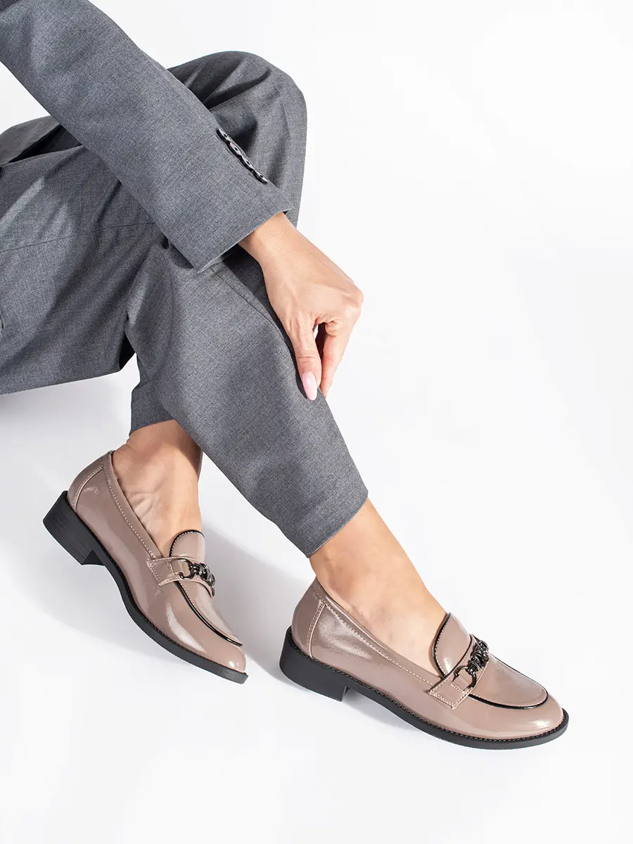 Pohodlné dámske mokasíny béžovej farby na širokom podpätku