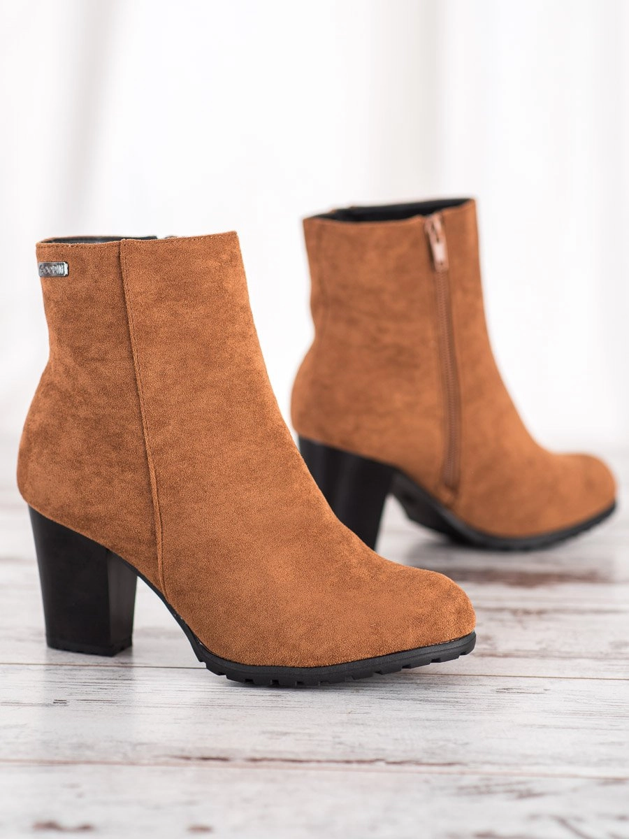 Praktické dámske členkové topánky béžovej farby na širokom podpätku
