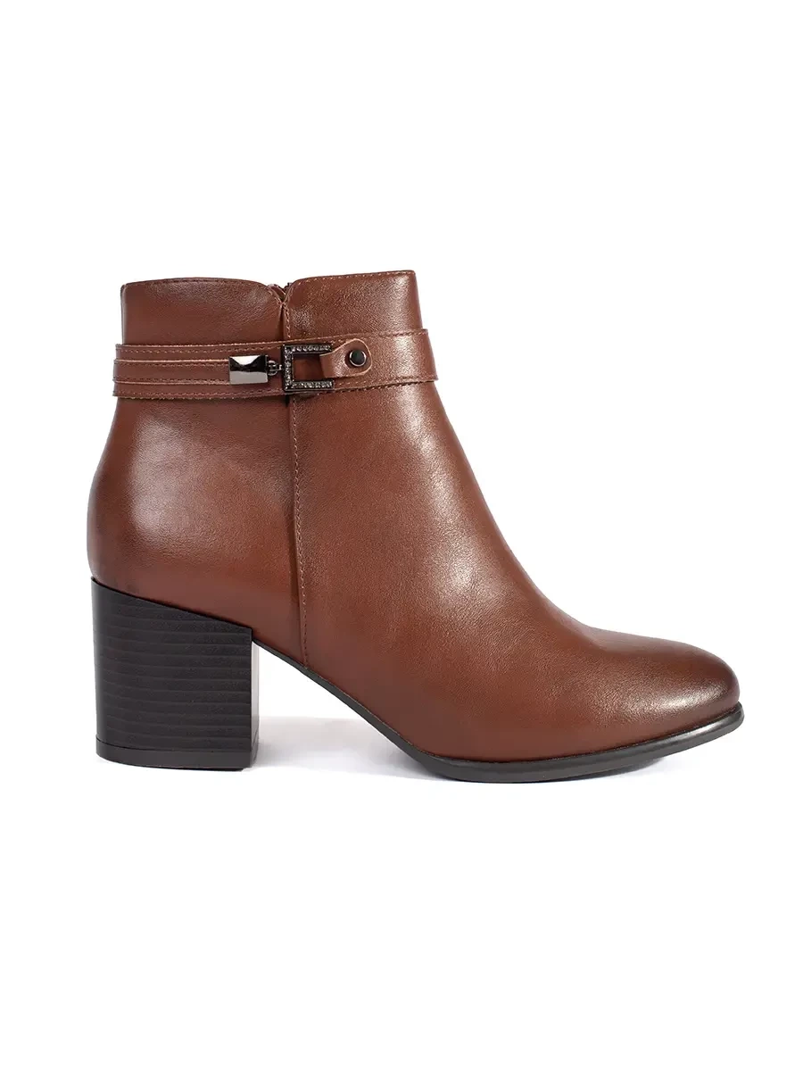 Praktické dámske členkové topánky hnedej farby na širokom podpätku