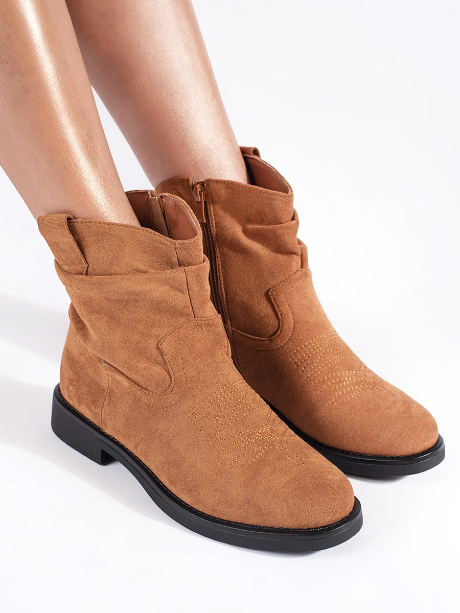 Štýlové dámske hnedé členkové topánky bez podpätku