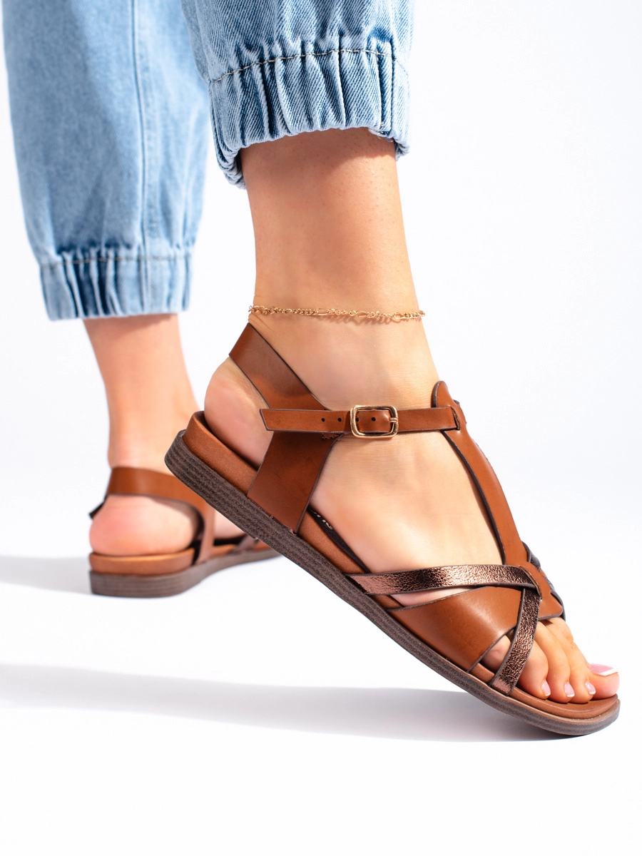 Štýlové hnedé dámske sandále na podpätku