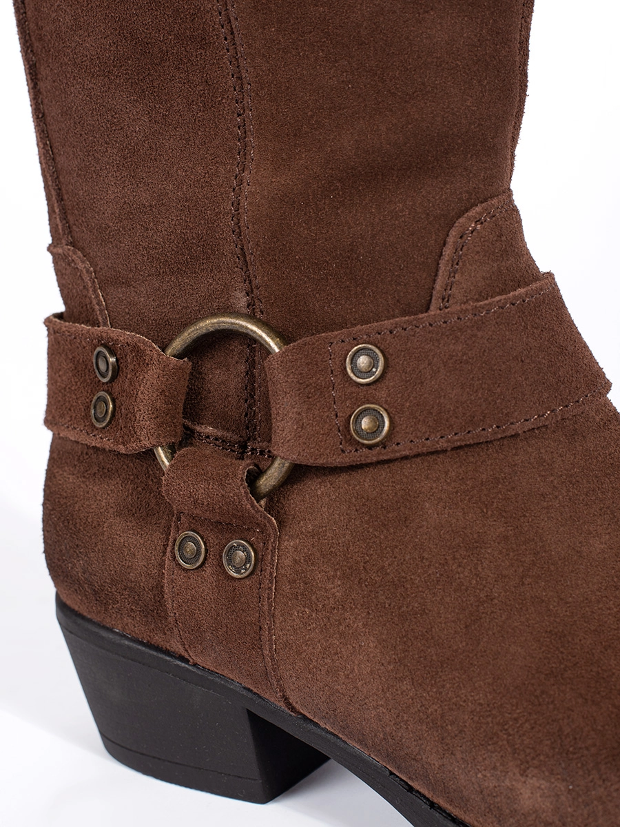 Trendy dámske členkové topánky hnedej farby na širokom podpätku