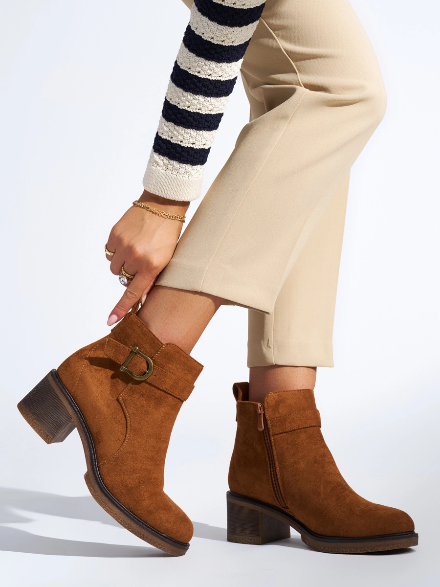 Trendy dámske členkové topánky hnedej farby na širokom podpätku