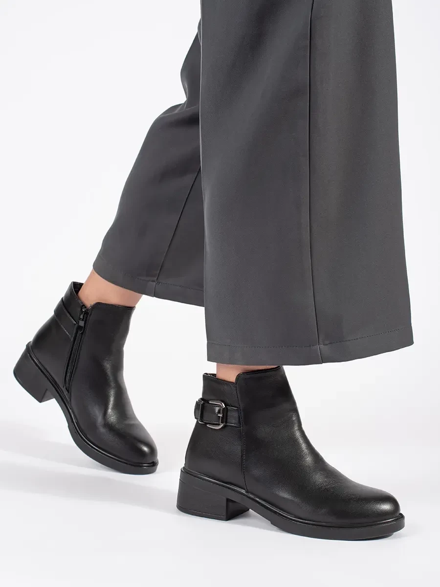 Vynikajúce dámske čierne členkové topánky na širokom podpätku