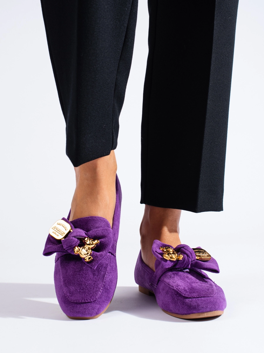 Zaujímavé dámske fialové mokasíny bez podpätku